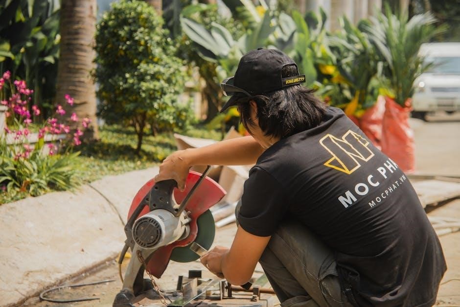 Always wear protective gear, including safety glasses and gloves, when operating a circular saw․ Ensure the workpiece is secure and flat to prevent movement․ Keep loose clothing tied back and avoid jewelry that could catch․ Maintain a firm grip on the saw and keep hands away from the blade’s path․ Never reach over the blade while cutting․ Ensure proper blade installation and alignment․ Keep children and bystanders at a safe distance․ Avoid overreaching or applying excessive pressure, which can cause loss of control; Regularly inspect the blade for damage or dullness before use․ Follow manufacturer guidelines for optimal safety and performance․
